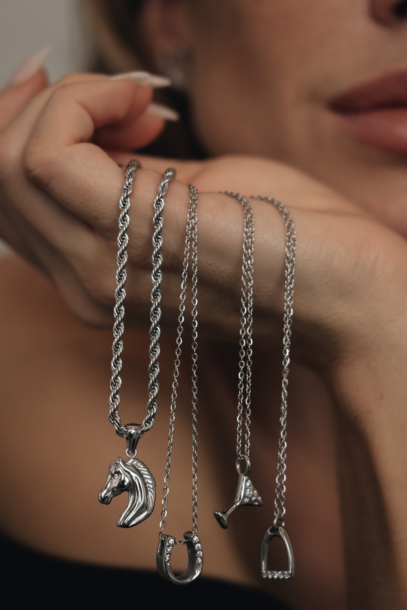 Ob beim Training, im Alltag oder auf Events – diese Reiterschmuck-Kette ergänzt jedes Outfit mit sportlicher Eleganz und silbernem Glanz.