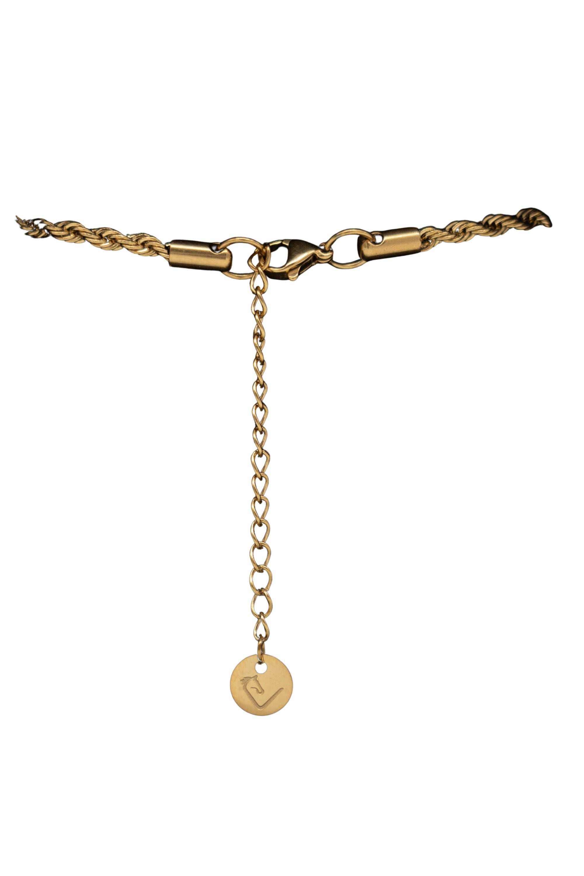 Diese vergoldete Edelstahlkette kombiniert ein filigranes Design mit edlen Motiven – das perfekte Accessoire für Reiterinnen und Reiter.
