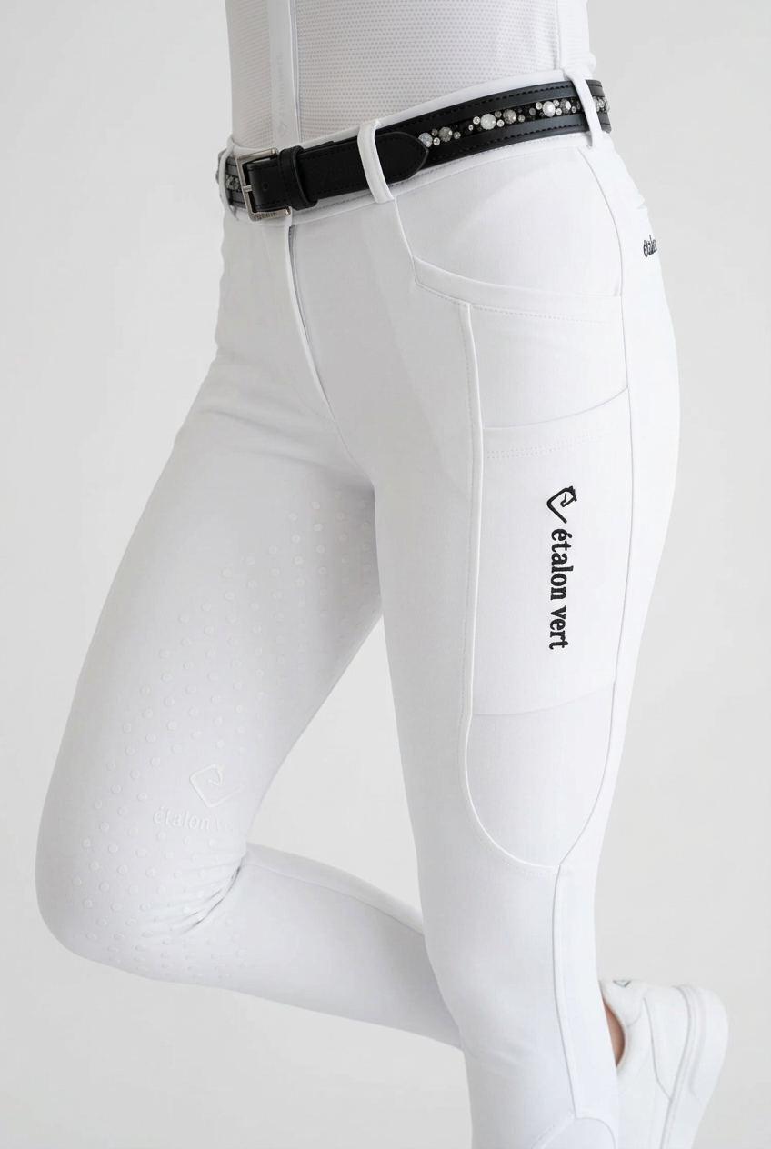 Absolut blickdicht & Squat Proof für ein sicheres Auftreten: Die größte Sorge vieler Reiterinnen auf dem Turnier ist eine durchscheinende weiße Reithose. Das hochwertige Funktionsmaterial der Belissimo 2.0 nimmt dir diese Angst komplett: Es ist zu 100 % blickdicht. Egal, ob du dich bückst, um die Gamaschen anzulegen, oder direkt vor den Richtern trabst – die Hose sitzt wie eine zweite Haut, bietet eine angenehme Kompression und lässt absolut nichts durchscheinen.